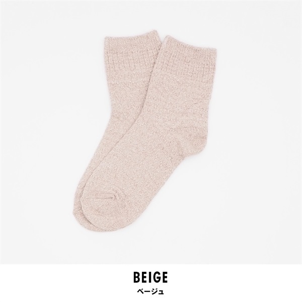 薄手でもあたたかい素材感で、靴の中でごわつかず快適。クルー丈なのでスカートやパンツ、ブーツなど様々なスタイルに合わせやすく、冬の冷え対策にもぴったりです。