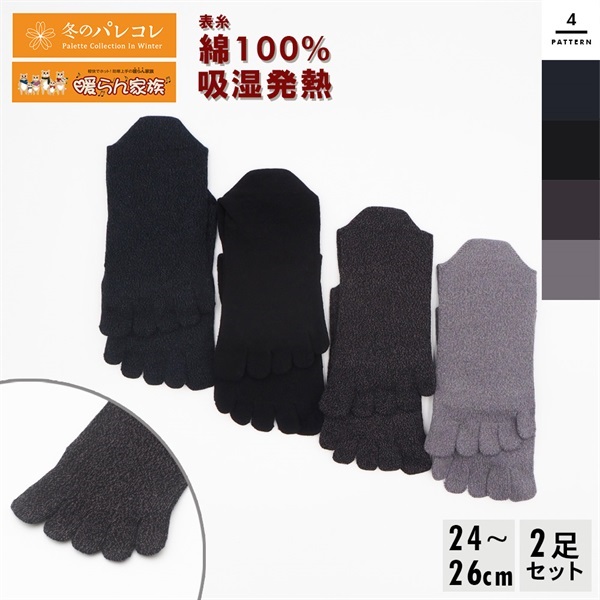 ◆ 表糸綿100%でやさしい肌ざわり ◆ 吸湿発熱素材で足元をしっかり保温 ◆ 5本指タイプでムレにくく快適 ◆ クルー丈で通勤・ビジネスにも対応 ◆ 2足組で洗い替えにも便利