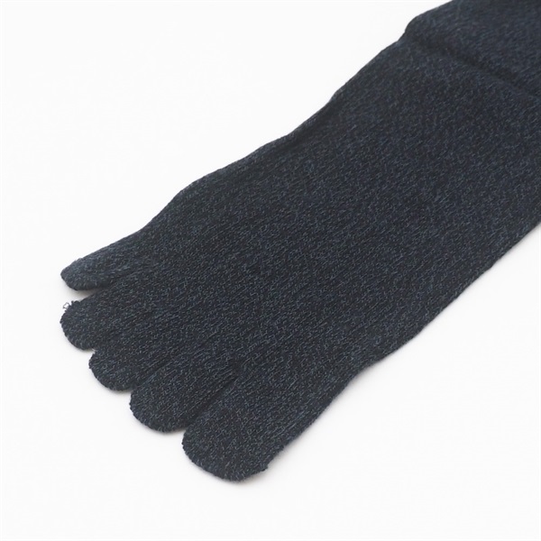 指先が独立した5本指設計でムレにくく、長時間履いても快適。クルー丈なのでスラックスにも合わせやすく、ビジネスからカジュアルまで幅広いシーンで活躍します。