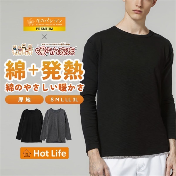 パレコレ/ホットライフ メンズ綿混裏ボアクルーネック長袖トップス
