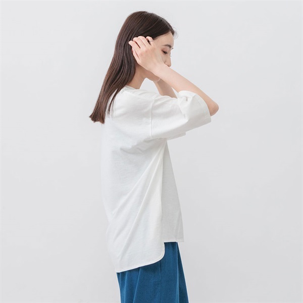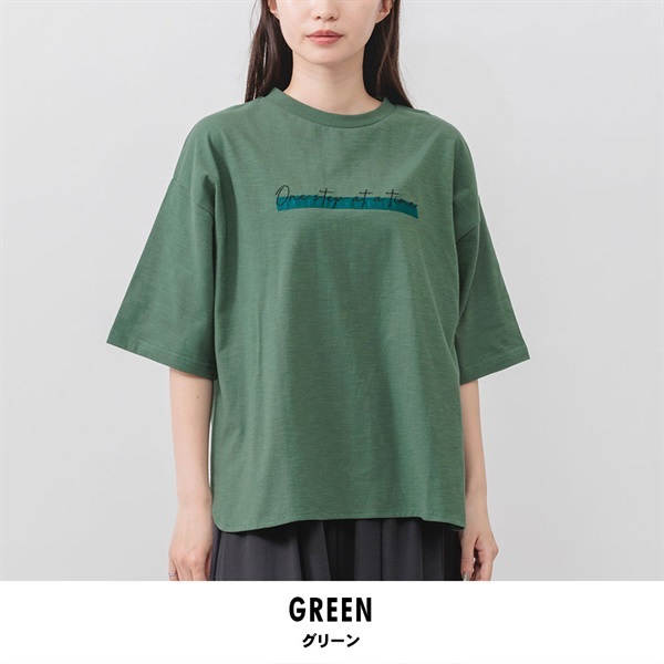m.m.o(エムエムオー) レディース刺繍ロゴラウンドヘムカットソー