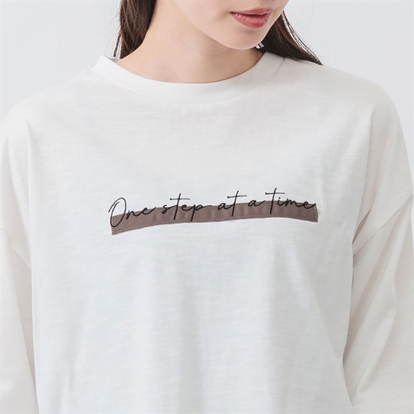 テープ&ロゴ刺繍が目を惹くラウンドヘムTシャツ。