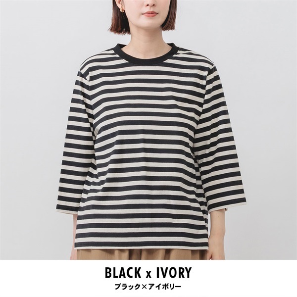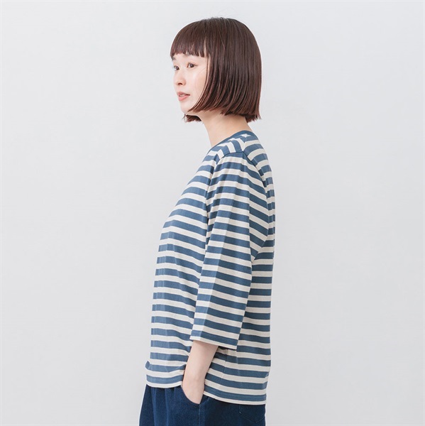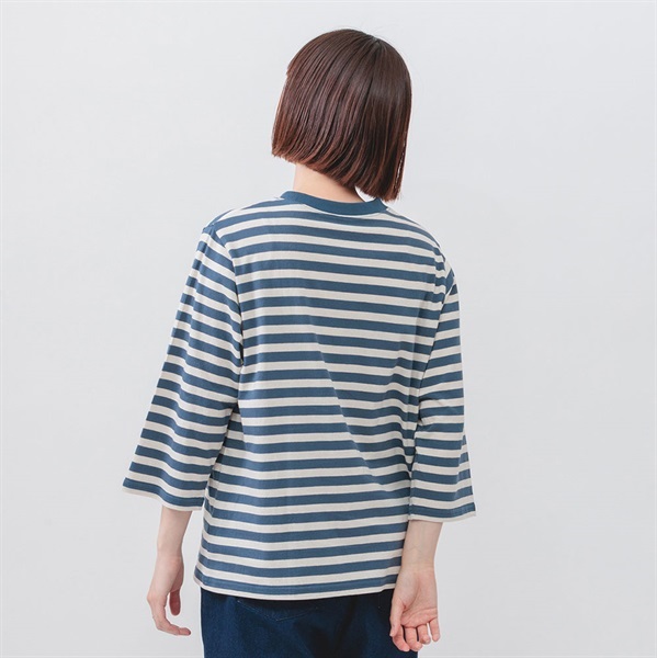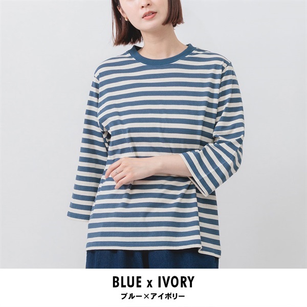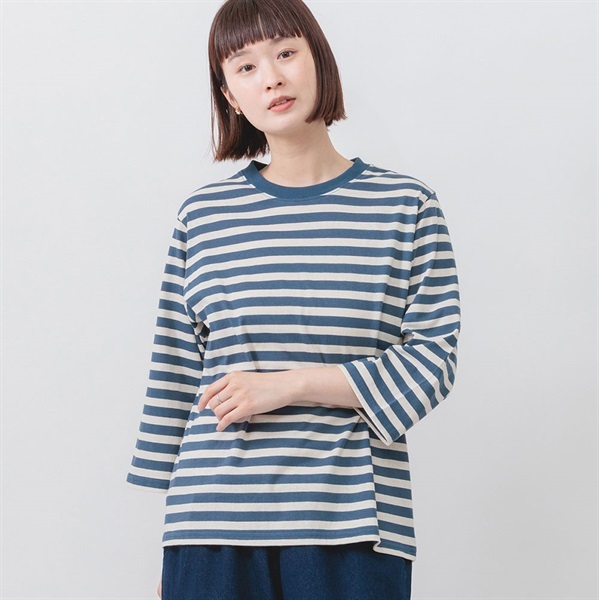 m.m.o(エムエムオー) レディースクルーネック七分袖プルオーバーボーダートップス