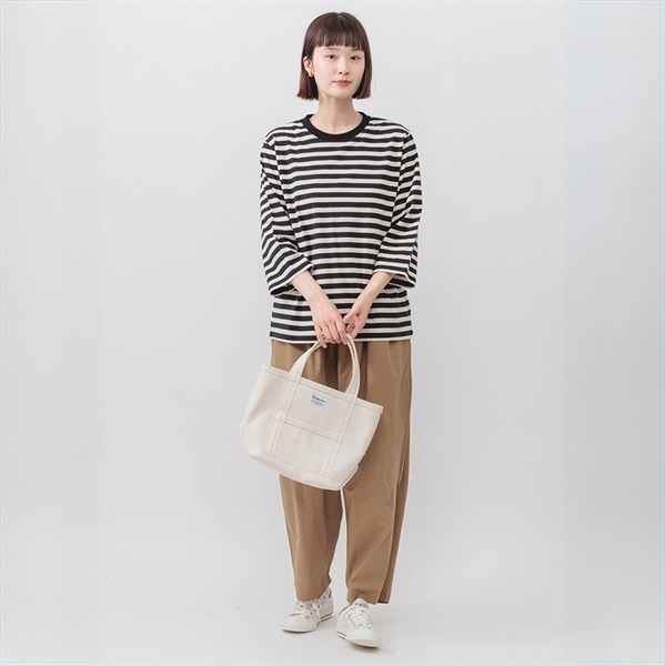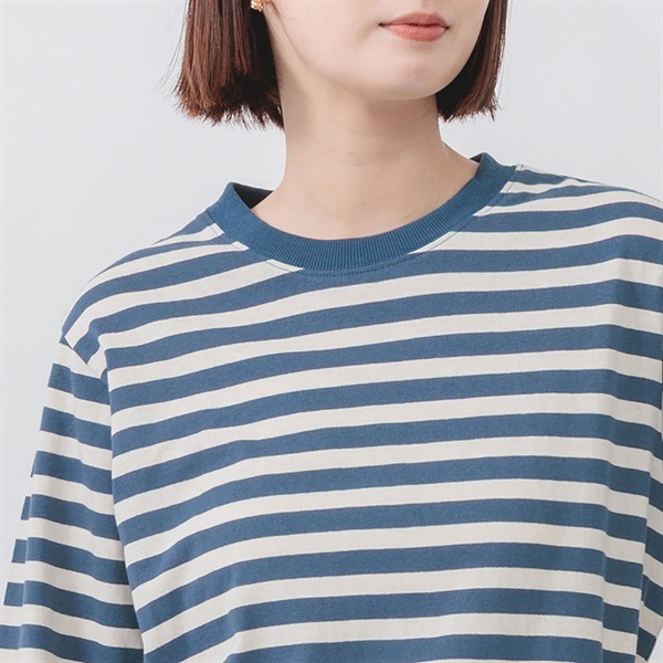 ベーシックなシルエットと 先染めボーダーの 相性抜群なアイテム。