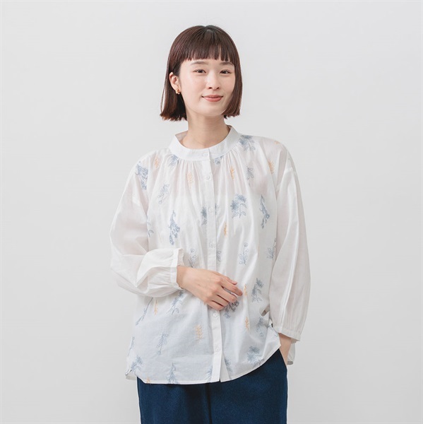 さらりとした綿素材に繊細な刺繍をのせた、夏?初秋にぴったりの軽やかな一枚