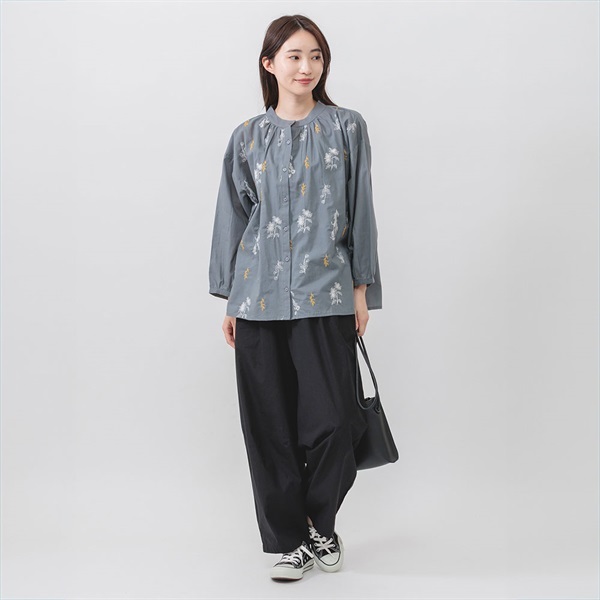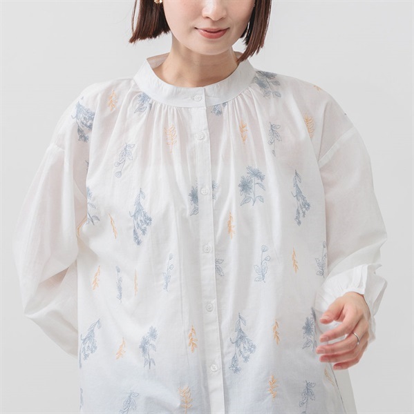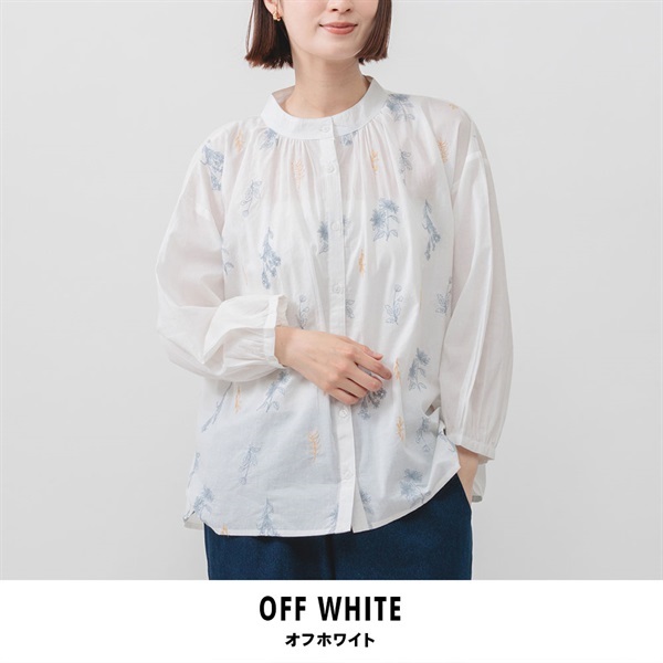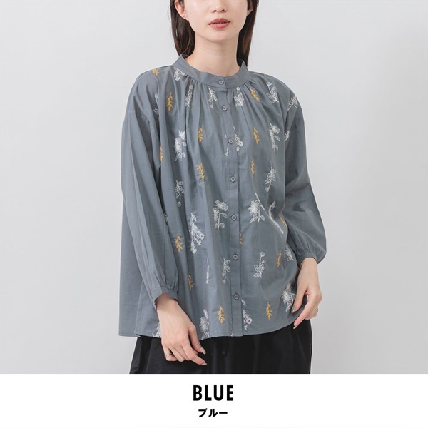 m.m.o(エムエムオー) レディース前開き刺繍ギャザーブラウス刺繍ブラウス