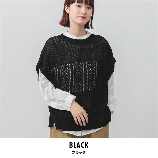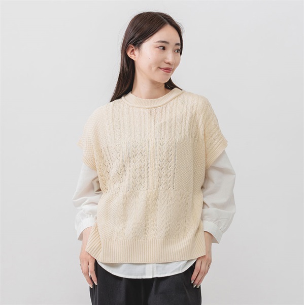 アウター(ベスト):7G 柄編み 14/-×3PLY 麻タッチアクリル