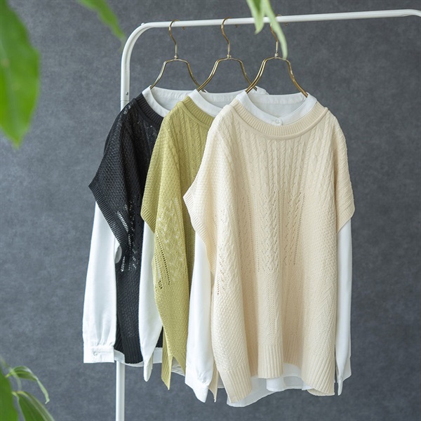 ニットベストとインナーブラウスのアンサンブル商品
