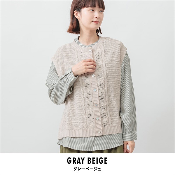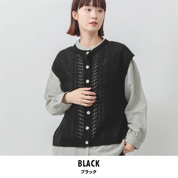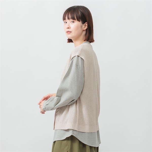 アウター(ベスト)7G 柄編み 14/-×3PLY 麻タッチアクリル