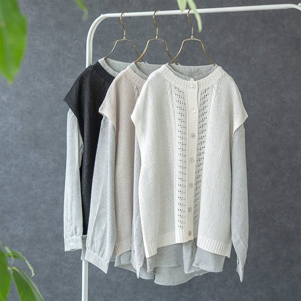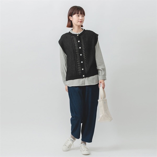 m.m.o.(エムエムオー) レディース前開き麻タッチベスト&布帛スタンドカラーブラウス