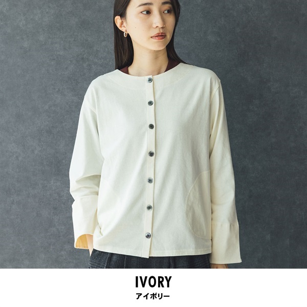 綿100%のOEヤーンを使用したバスク天竺素材の前開きカーディガン