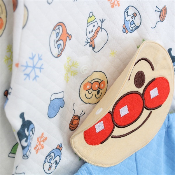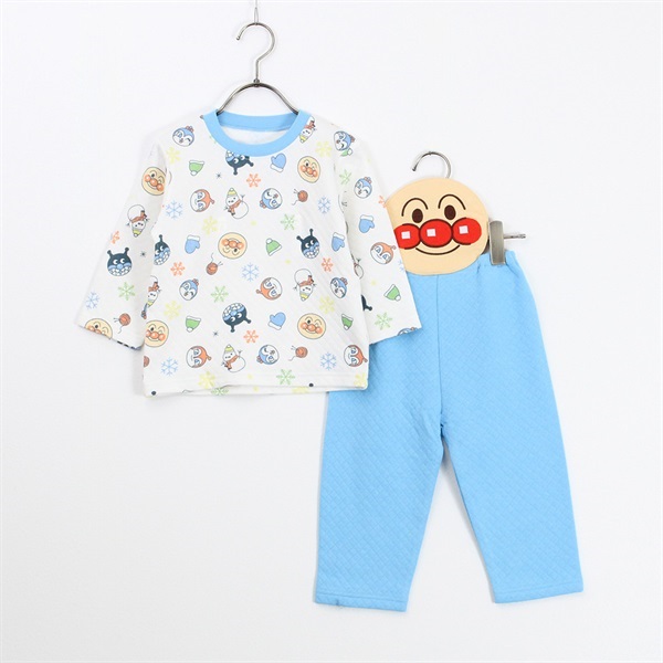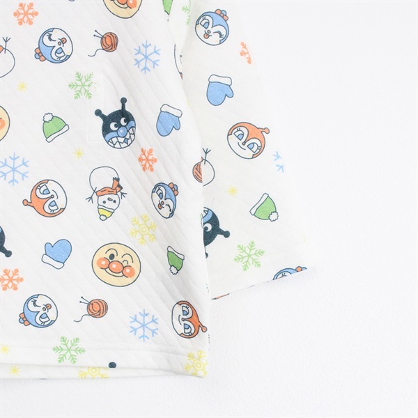 寝冷えを防ぐ 腹あて付きデザイン で、夜中も安心。フェイス部分には スナップボタン が付いているのでしっかり留められ、ずれにくい仕様になっています。 さらにパンツは おしり部分がゆったり設計 されているため、動きやすくリラックスして着られます。