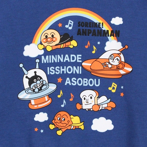 デザインには アンパンマン・バイキンマン・しょくぱんまん・カレーパンマン・ドキンちゃん が仲良く空を飛ぶように描かれた、見ているだけでほっこりする可愛いプリント。子どもたちが喜ぶ人気キャラクターが勢ぞろいです。