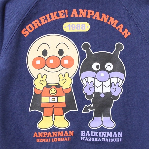 ◆ フードはボタンで着脱可能、便利で使いやすい ◆ 正面アンパンマンデザインはポケット付き ◆ 背面にはアンパンマンとバイキンマンの豪華プリント ◆ 裏毛仕様で秋冬の普段着や外出着におすすめ