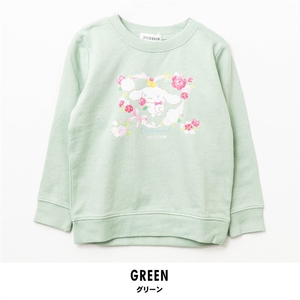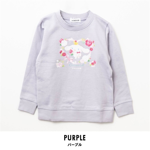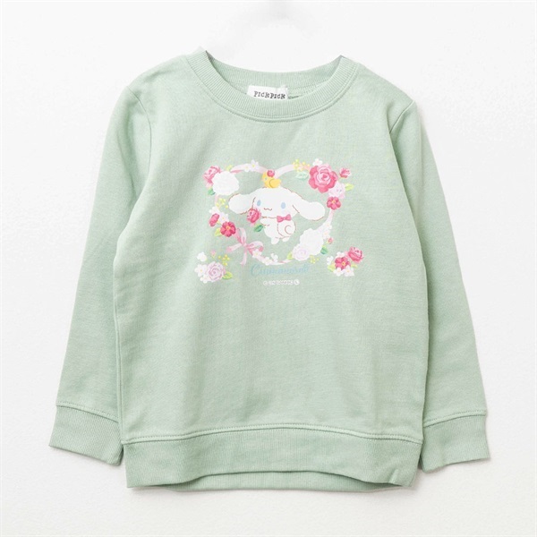 フロントには大人気キャラクター「シナモロール」と華やかなフラワープリントが施され、ガーリーで可愛らしいデザインに仕上げています。裏毛仕様の柔らかな生地で、肌触りが良く快適な着心地。袖口・裾・襟元はリブ仕立てで動きやすく、デイリー使いからお出かけまで幅広く活躍します。おしゃれを楽しみたいお子さまにぴったりの、ナチュラルで可愛いスウェットシャツです。