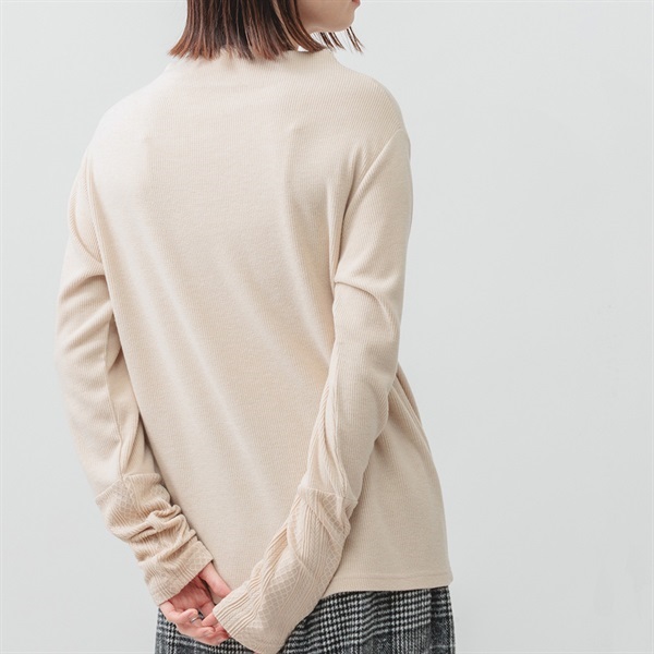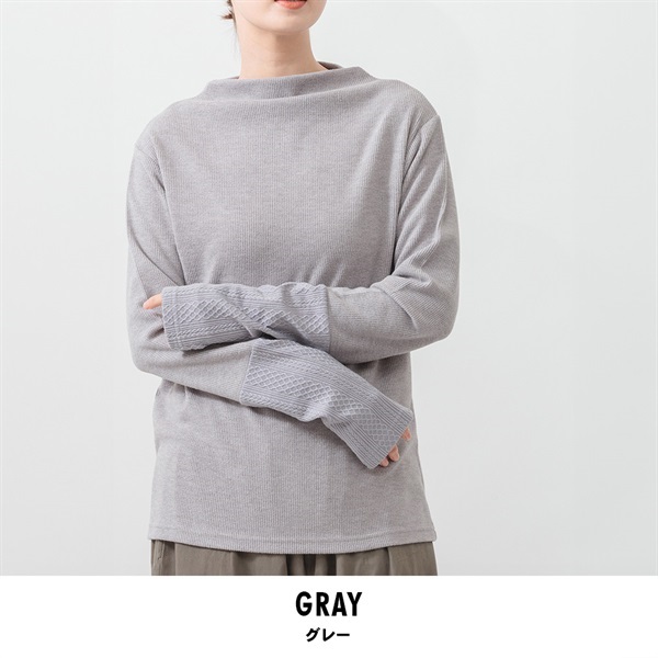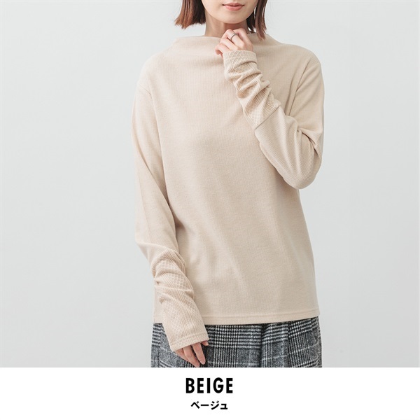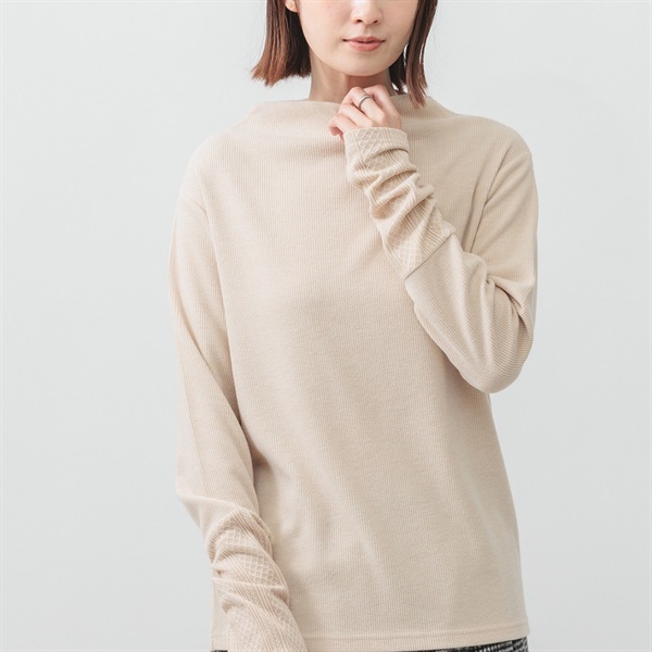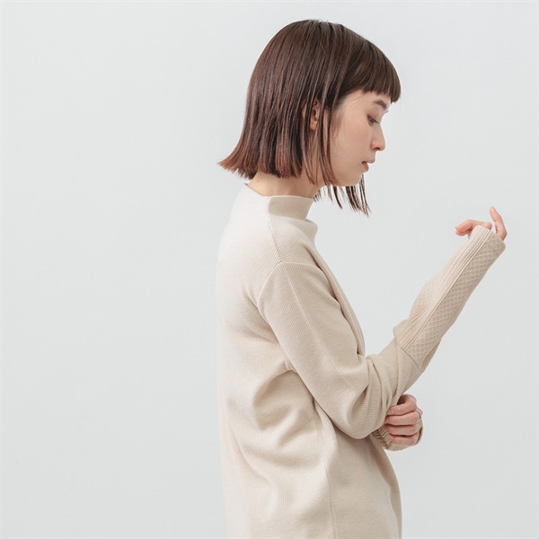 m.m.o レディース ボトルネック ジャガード袖プルオーバー