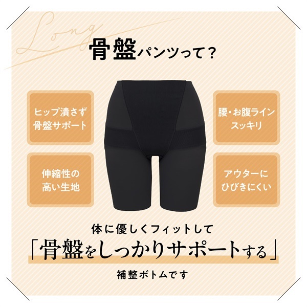 骨盤パンツは、体に優しくフィットして「骨盤をしっかりサポート」する補整ボトムです