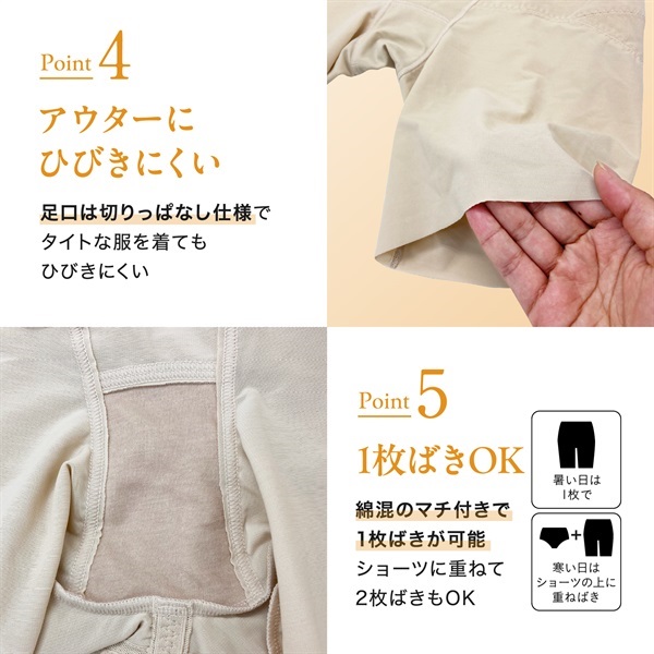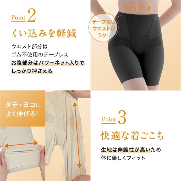 お腹部分は生地を二重構造にする事で、気になるお肉を押さえます