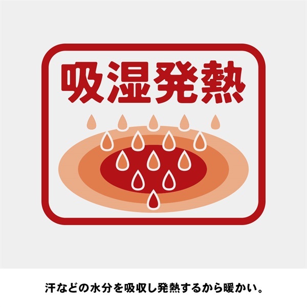 吸湿発熱:汗などの水分を熱に変えてあたためる
