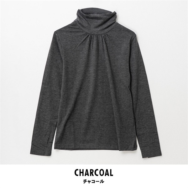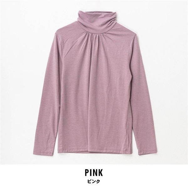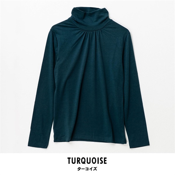パレコレ レディースヒートマジック無地ベア天竺クシュネック長袖Tシャツ
