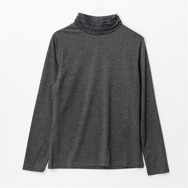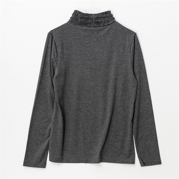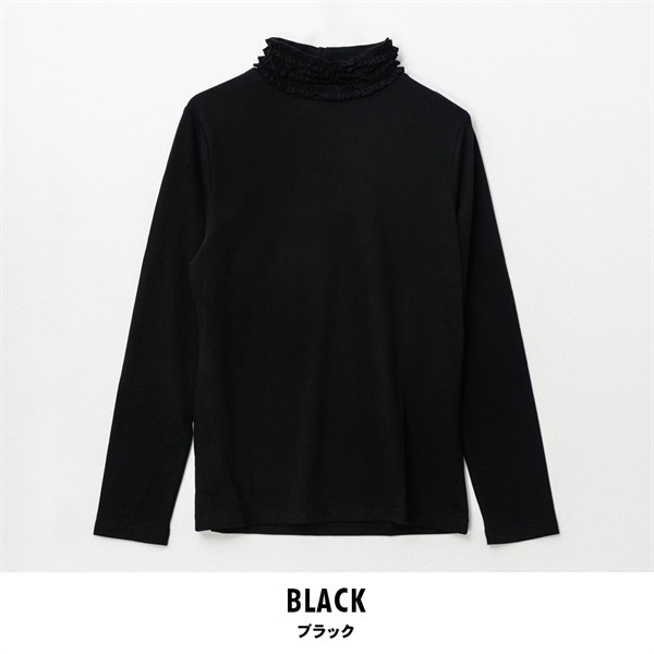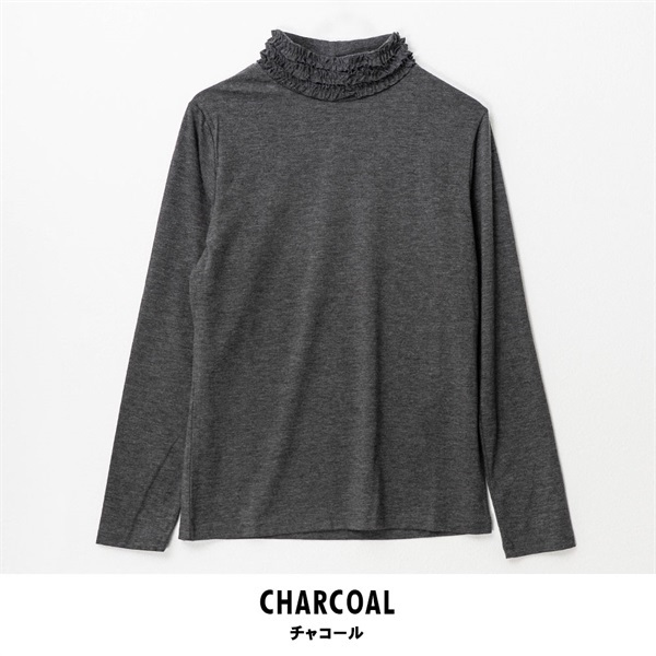 パレコレ レディースヒートマジック無地ベア天竺フリルネック長袖Tシャツ