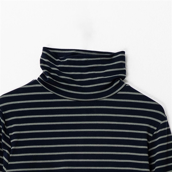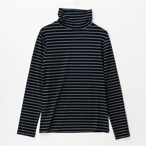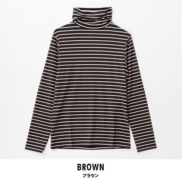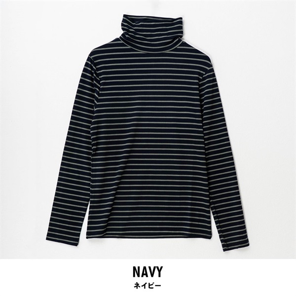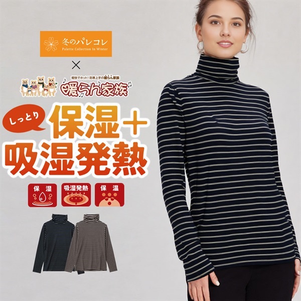 パレコレ レディースヒートマジックボーダーベア天竺タートルネック長袖Tシャツ