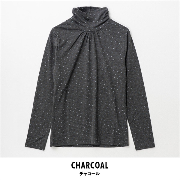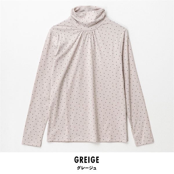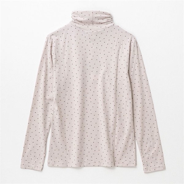 パレコレ レディースヒートマジック若葉柄ベア天竺クシュネック長袖Tシャツ