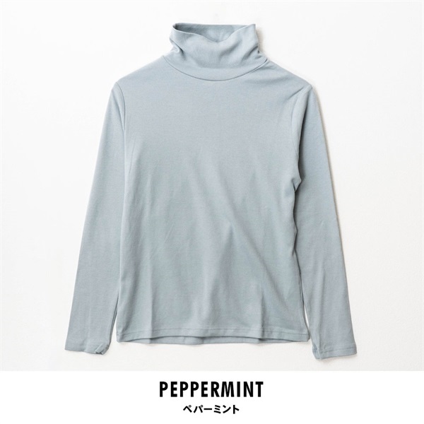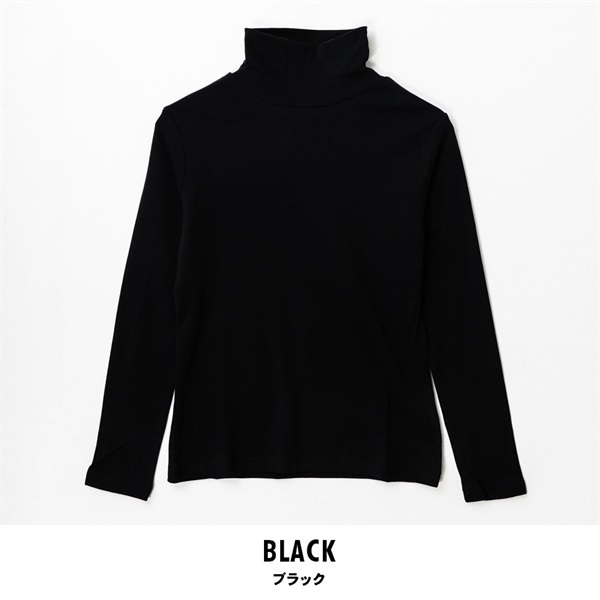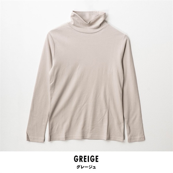 パレコレ/ホットライフ レディース吸湿発熱+綿100%タートルネック無地長袖Tシャツ