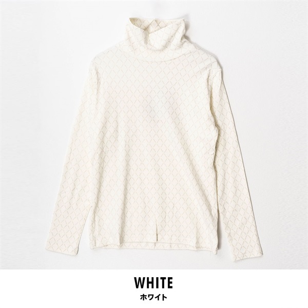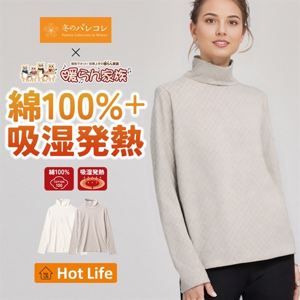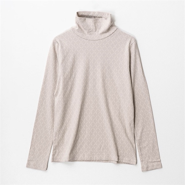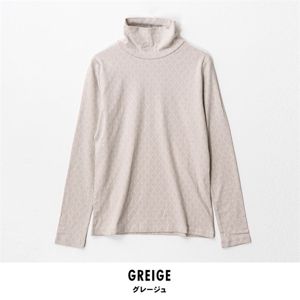 パレコレ/ホットライフ レディース吸湿発熱+綿100%タートルネックダイヤ柄長袖Tシャツ