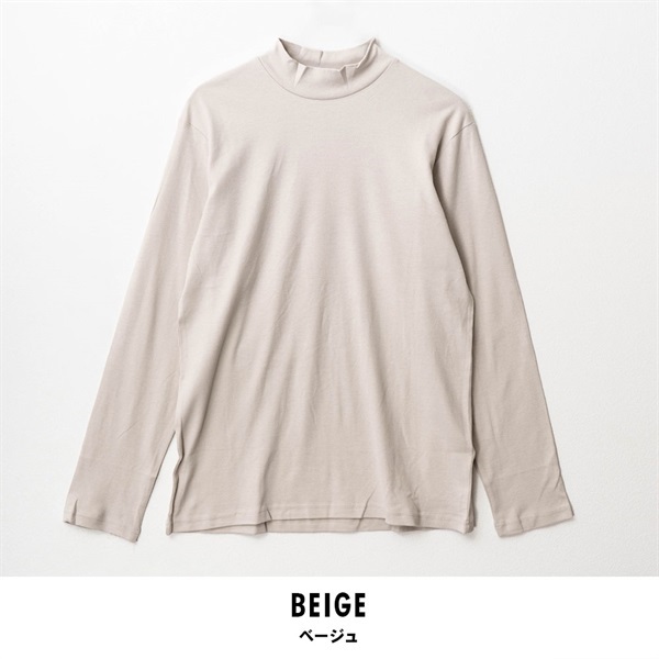 パレコレ/ホットライフ メンズ吸湿発熱+綿100%ハイネック無地長袖Tシャツ