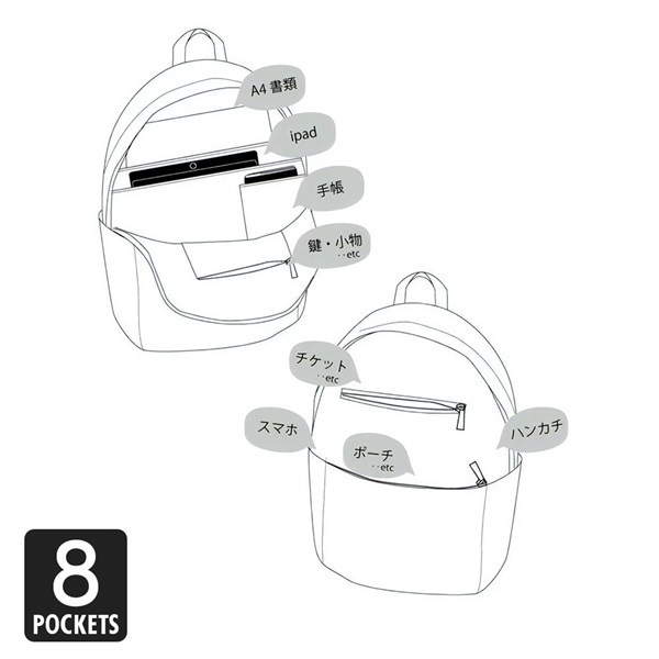・外側フロントポケット×2/サイドポケット×2