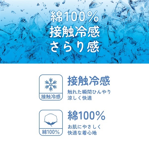 特徴 綿100%&接触冷感でさらッと爽やか。 脇に縫い目がなく、着心地すっきり◎