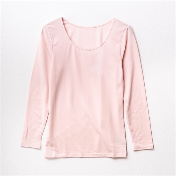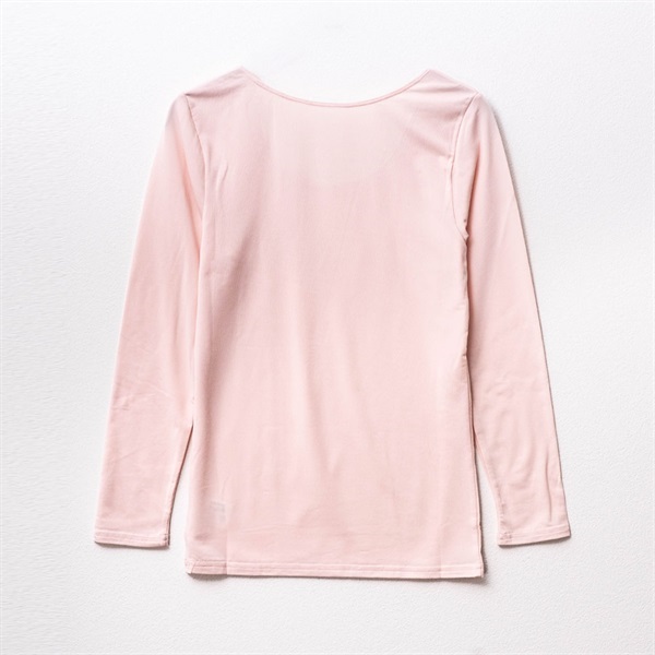 暖らん家族 レディース裏ピーチ起毛エステルベア天長袖UネックTシャツ
