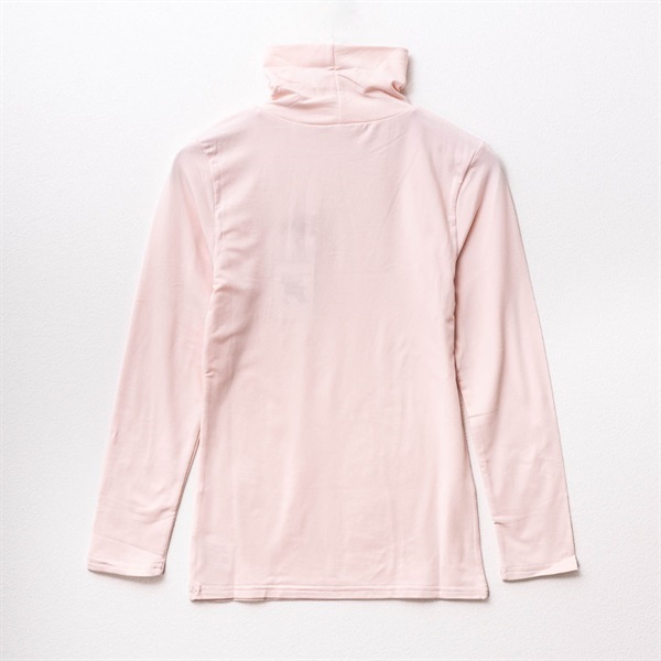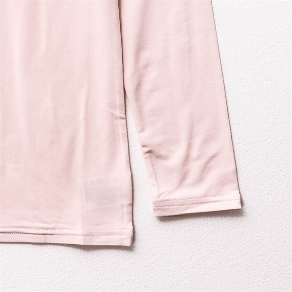 裏側はやさしいピーチ起毛仕上げで、ふんわりとした温もりに包まれながら快適に過ごせます。伸縮性に優れたポリエステル×ポリウレタン素材を使用しているため、体の動きにしなやかにフィットし、長時間着用してもストレスの少ない着心地。薄手なのに暖かく、冬場の重ね着にもぴったりです。ベーシックで着回しやすいデザインは、アウターに響きにくく、毎日の防寒インナーとして大活躍。カジュアルからお仕事服まで、幅広いシーンでお使いいただけます。