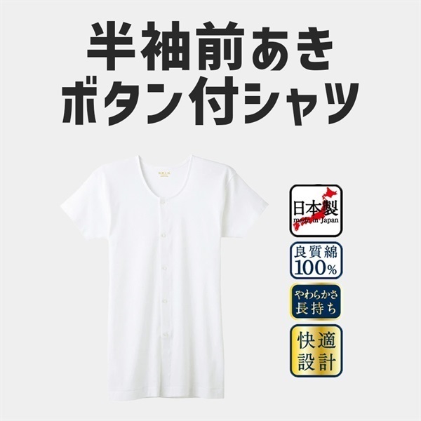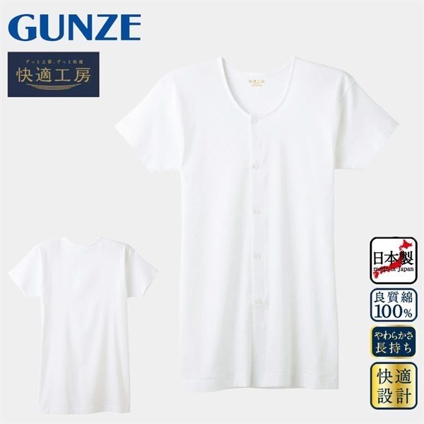 グンゼ 快適工房 メンズ半袖前あきボタン付シャツ