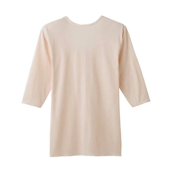 やわらかな綿100%素材で肌にやさしく、毎日着たくなる定番の七分袖前開きシャツ