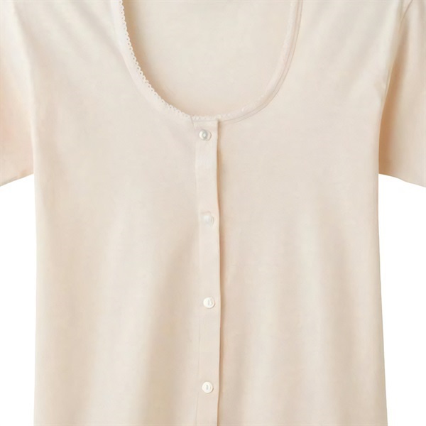 大きめのゆったり設計で、締めつけ感がなくリラックスできる着ごこち。さらに前開きボタン仕様なので、腕が上がりにくい方でも着脱がしやすいのが特徴です。