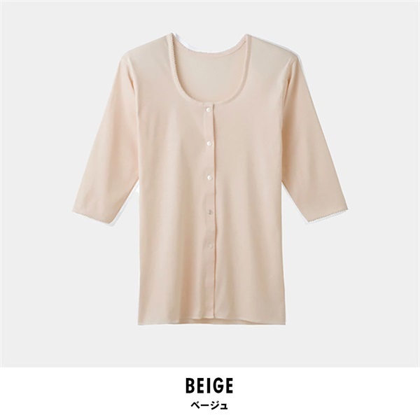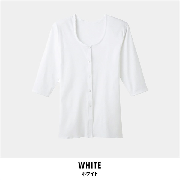 グンゼ 快適工房 レディース七分袖前開きボタン付シャツ