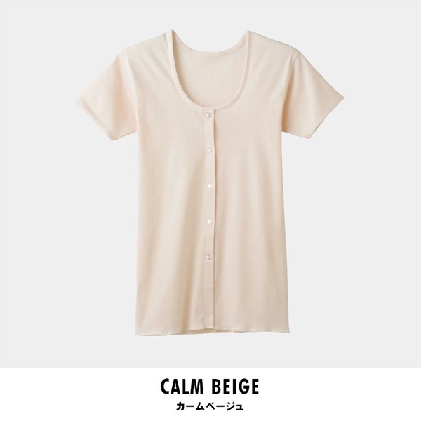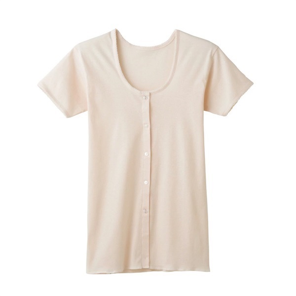 大きめのゆったり設計で、締めつけ感がなくリラックスできる着ごこち。さらに前開きボタン仕様なので、腕が上がりにくい方でも着脱がしやすいのが特徴です。