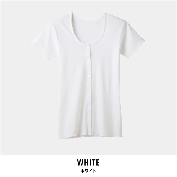 グンゼ 快適工房 レディース三分袖前開きボタン付シャツ