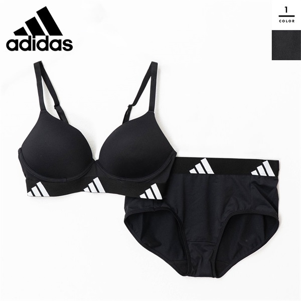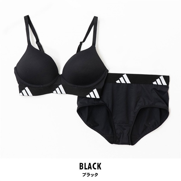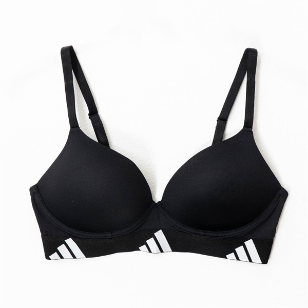 ・ADIDASのリピートロゴゴムが映える、シンプルで着用しやすいデザイン。柔らかい下厚のモールドカップを使用しているのでふんわり自然に盛れる。長時間の着用でも快適なノンワイヤー仕様。